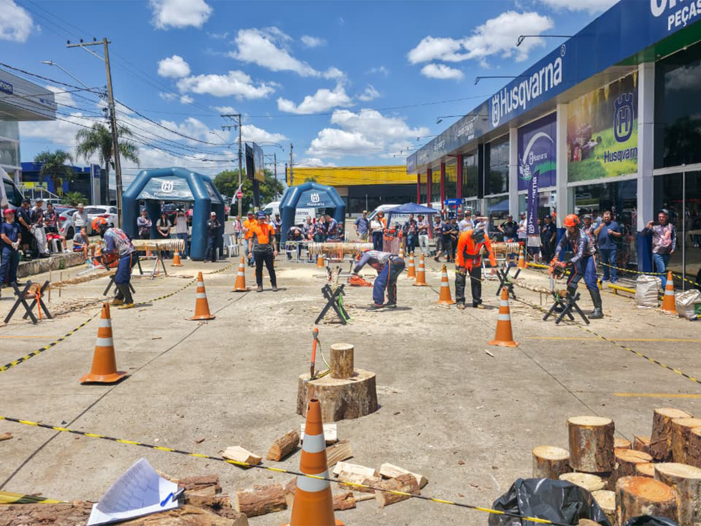 A Husqvarna está percorrendo o país com desafios práticos que testam a técnica, o controle e a precisão no uso da motosserra.
